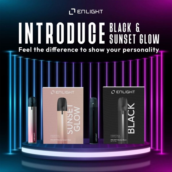 ENLIGHT pod juga tersedia 2 pilihan warna yaitu Sunset Glow dan Black yang keren.