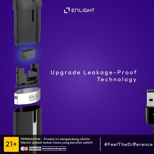 Untuk masalah leaking? ENLIGHT Pod didukung fitur Leaked Proof Tecnology, yang merupakan sistem pengaman agar cartridge pod Kamu tidak leaking, dan kapasitas liquid hingga 2 ml yang bisa Kamu gunakan sebanyak 700-800 puff.
