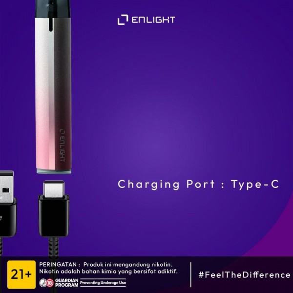 Kamu pun tidak perlu khawatir masalah daya tahan baterai, ENLIGHT menggunakan port charger type C yang memungkinkan proses pengisian daya berlangsung dengan lebih cepat.