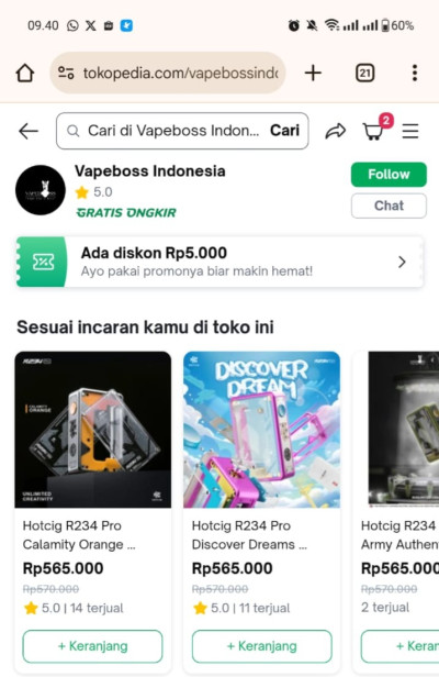 2. Kunjungi situs resmi Tokopedia Vapeboss di  www.tokopedia.com/vapebossindonesia.
